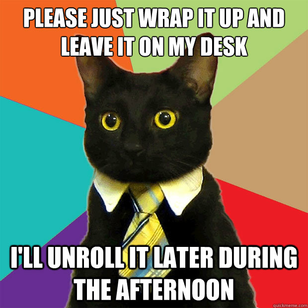 Please just wrap it up and leave it on my desk I'll unroll it later during the afternoon