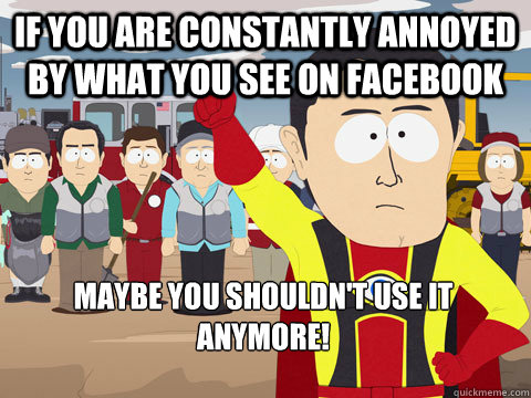 If you are constantly annoyed by what you see on Facebook Maybe you shouldn't use it anymore!