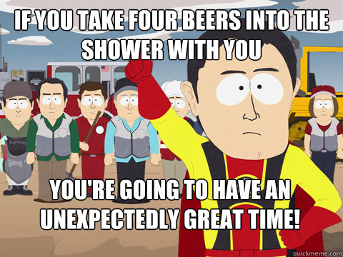 If you take four beers into the shower with you you're going to have an unexpectedly great time!