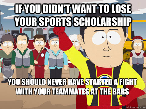 If you didn't want to lose your sports scholarship you should never have started a fight with your teammates at the bars