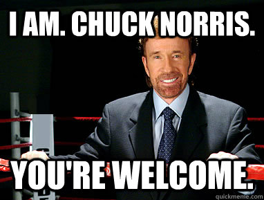 I am. Chuck Norris. You're Welcome.