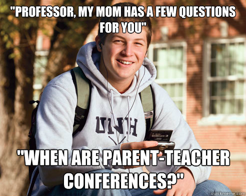 "Professor, My Mom has a few questions for you" "When are parent-teacher conferences?"