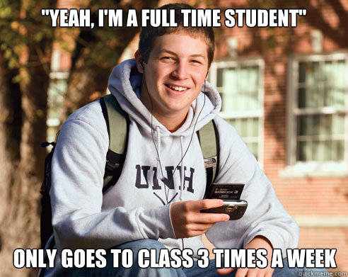 "Yeah, I'm a full time student" Only goes to class 3 times a week