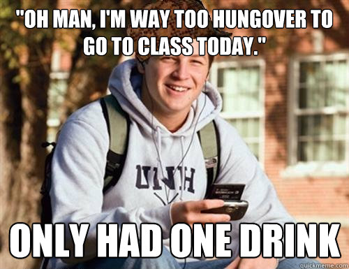 "Oh man, I'm way too hungover to go to class today." Only had one drink