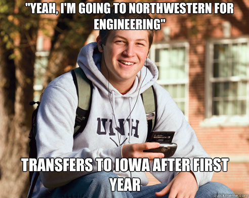 "Yeah, I'm going to Northwestern for engineering" Transfers to Iowa after first year