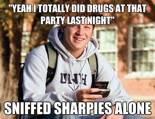 "Yeah I TOTALLY DID DRUGS AT THAT PARTY LAST NIGHT" SNIFFED SHARPIES ALONE