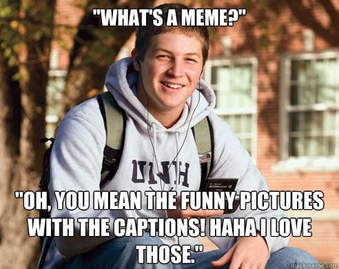 "What's a meme?" "Oh, you mean the funny pictures with the captions! HAHA I love those."