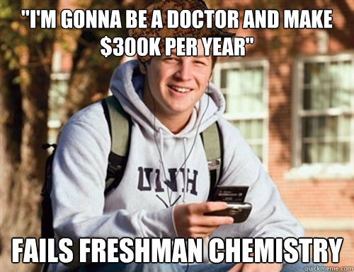"I'm gonna be a doctor and make $300K per year" fails freshman chemistry