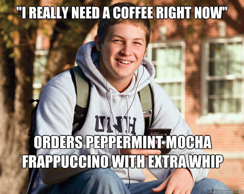 "I really need a coffee right now" Orders peppermint Mocha Frappuccino with extra whip cream