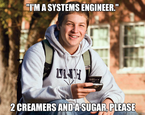 "I'm a Systems Engineer." 2 creamers and a sugar, please