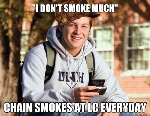 "I don't smoke much" chain smokes at LC everyday