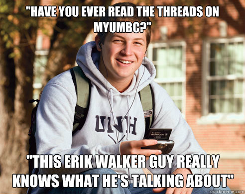 "Have you ever read the threads on myumbc?" "This Erik Walker guy really knows what he's talking about"