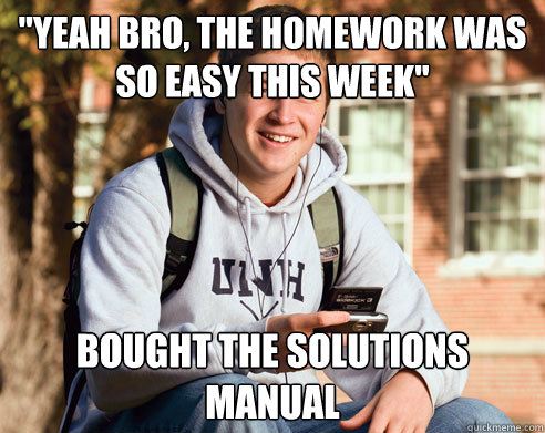 "Yeah Bro, the homework was so easy this week" Bought the solutions manual