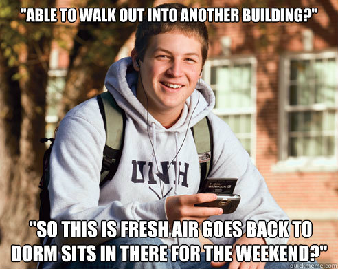 "Able to walk out into another building?" "So this is fresh air goes back to dorm sits in there for the weekend?"