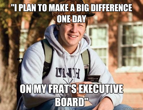"I plan to make a big difference one day On my frat's executive board"