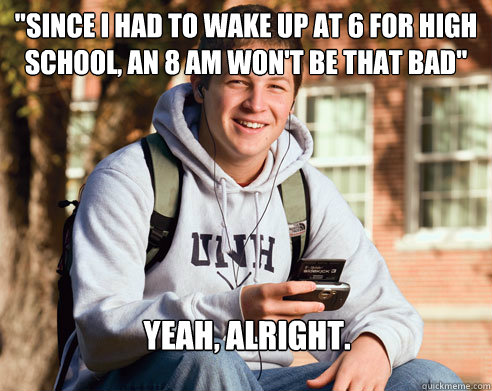 "Since I had to wake up at 6 for High School, an 8 AM won't be that bad" Yeah, Alright.