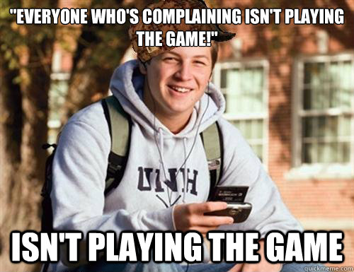"everyone who's complaining isn't playing the game!" isn't playing the game
