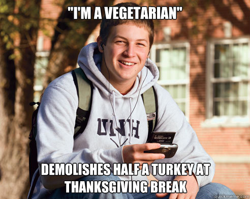 "I'm a vegetarian" demolishes half a turkey at thanksgiving break