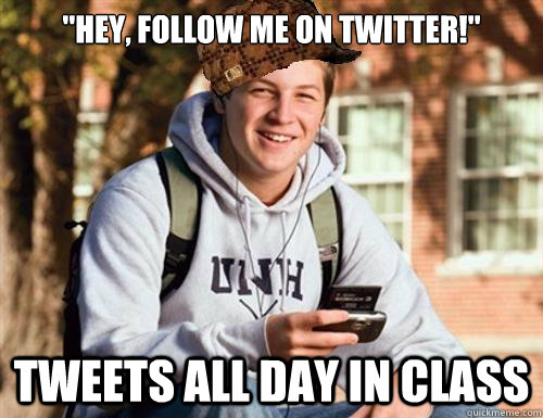 "Hey, follow me on Twitter!" Tweets all day in class