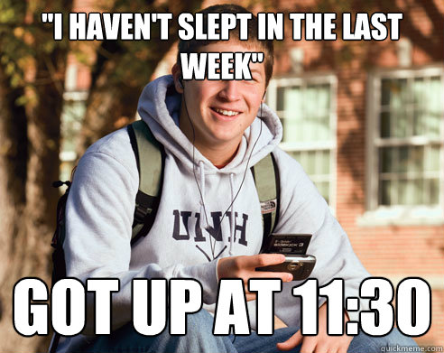 "I haven't slept in the last week" got up at 11:30