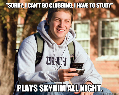 "Sorry, I can't go clubbing, I have to study" Plays Skyrim all night.