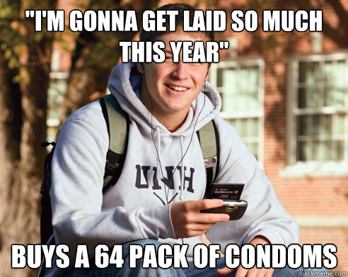 "I'm gonna get laid so much this year" buys a 64 pack of condoms