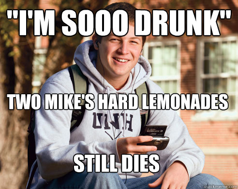 "I'm sooo drunk" Two mike's hard lemonades still dies