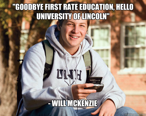 "Goodbye first rate education, Hello University of Lincoln" - Will Mckenzie