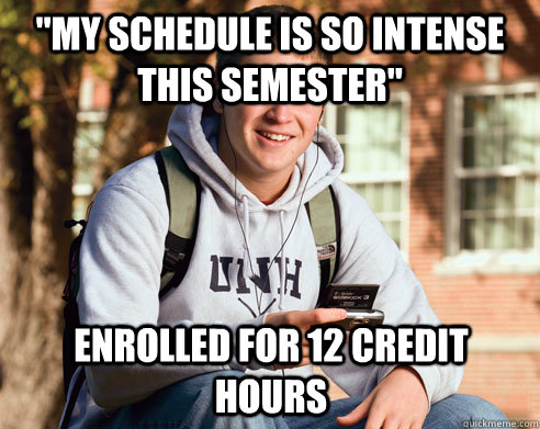 "My schedule is so intense this semester" Enrolled for 12 Credit Hours