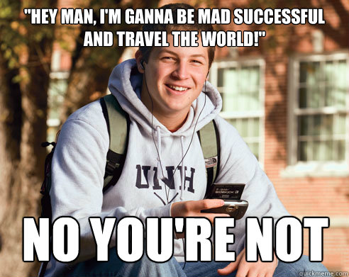 "Hey man, I'm ganna be mad successful and travel the world!" NO YOU'RE NOT