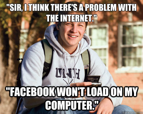 "Sir, I think there's a problem with the internet." "Facebook won't load on my computer."