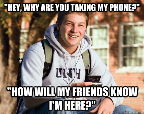 "Hey, why are you taking my phone?" "How will my friends know I'm here?"
