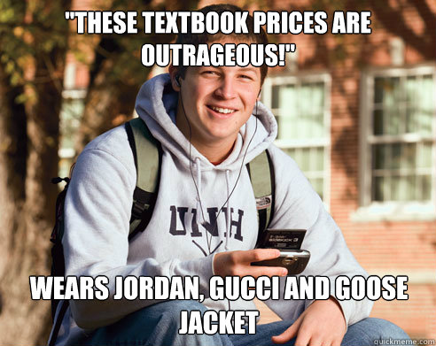 "These textbook prices are outrageous!" wears jordan, gucci and goose jacket