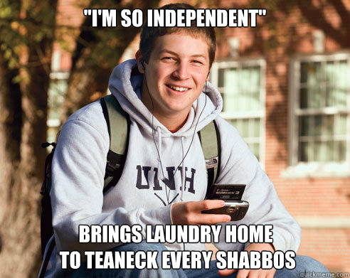 "I'm so independent" Brings laundry home to teaneck every shabbos