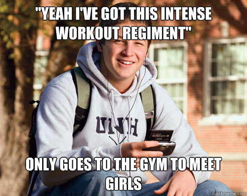 "Yeah I've got this intense workout regiment" Only goes to the gym to meet girls