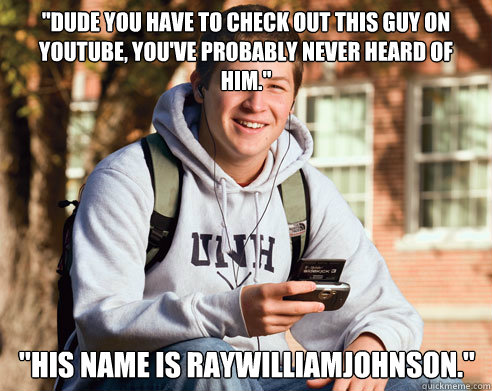 "dude you have to check out this guy on Youtube, you've probably never heard of him." "His name is RayWilliamjohnson."