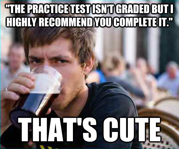 "The practice test isn't graded but I highly recommend you complete it." That's cute