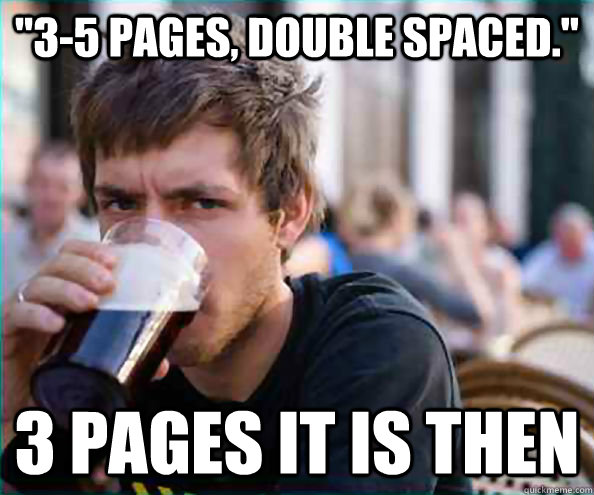 "3-5 PAGES, DOUBLE SPACED." 3 PAGES IT IS THEN