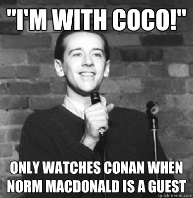 "i'm with coco!" only watches conan when norm macdonald is a guest