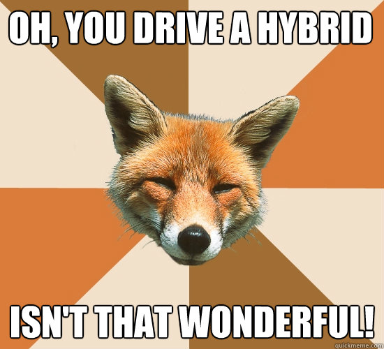Oh, you drive a HYBRID ISN'T THat wonderful!