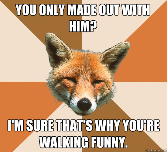 YOU ONLY MADE OUT WITH HIM? I'M SURE THAT'S WHY YOU'RE WALKING FUNNY.
