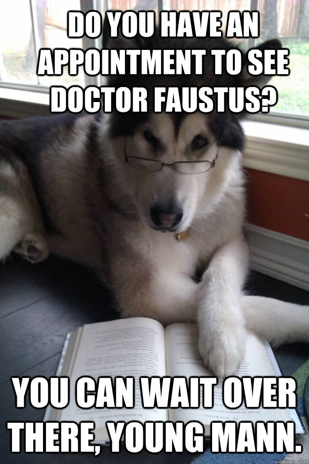 Do You have an appointment to see Doctor Faustus? You can wait over there, young mann.
