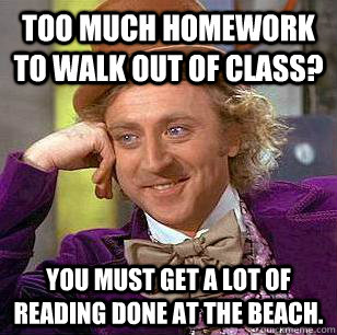 Too much homework to walk out of class? You must get a lot of reading done at the beach.