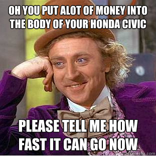 Oh you put alot of money into the body of your honda civic please tell me how fast it can go now