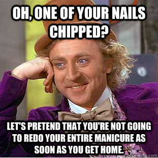 Oh, one of your nails chipped? Let's pretend that you're not going to redo your entire manicure as soon as you get home.