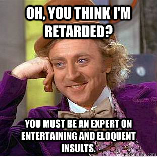 Oh, you think I'm retarded? You must be an expert on entertaining and eloquent insults.