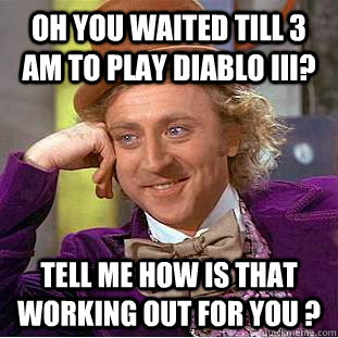 Oh you waited till 3 am to play Diablo iii? tell me how is that working out for you ?