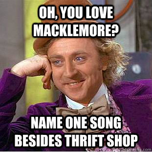 Oh, you love Macklemore? name one song besides Thrift Shop
