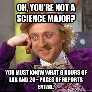 Oh, you're not a science major? You must know what 8 hours of lab and 20+ pages of reports entail.