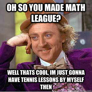 Oh so you made math league? well thats cool, im just gonna have tennis lessons by myself then